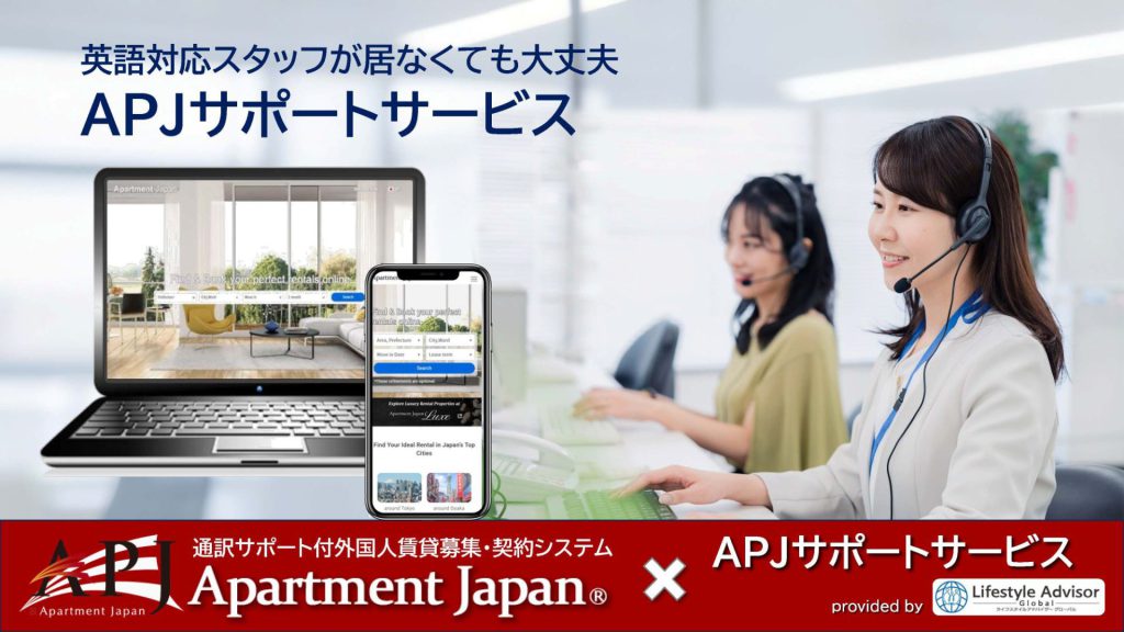 これにより、Apartment Japan®契約システムご利用加盟店様は、英語や外国語を話せるスタッフがいなくても、安心して外国人向け賃貸を運営していただけます。