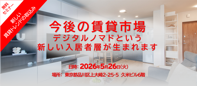 「デジタルノマドが選ぶ物件の特徴」「海外ノマドに物件を届ける方法」「日本人向け賃貸と外国人向け賃貸の違い」「外国人賃貸のコツ」等を実例を交えて解説いたします。また、これから外国人向け賃貸事業を始めようとご検討中の企業様向けに、 ホテルの予約サイトように、ウェブサイト上で賃貸物件を検索~契約締結までワンストップでできる 外国人向け賃貸募集・契約システム『Apartment Japan®』の機能と活用方法について解説します。 物件検索~契約~決済~契約書の自動作成(保証会社付)~契約完了まで、オンラインで全て完結できるApartment Japanシステムとその活用方法について解説致します。